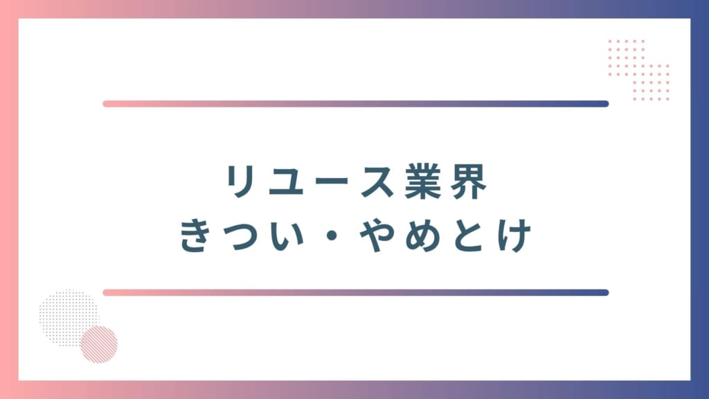 リユース業界はきつい・やめとけと言われている?将来性の裏にある大変さとは